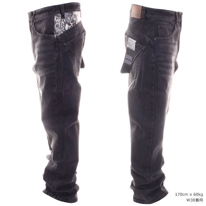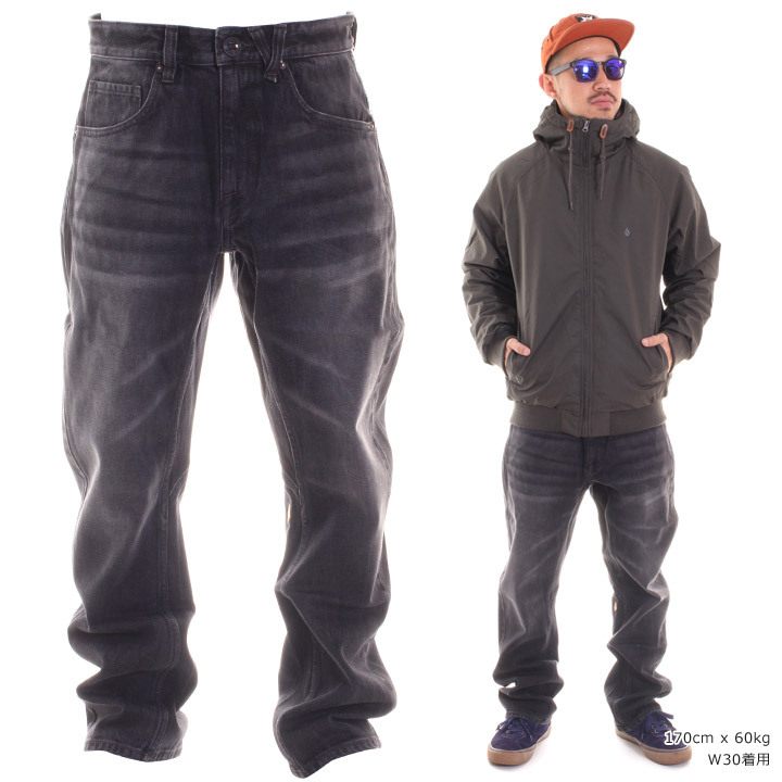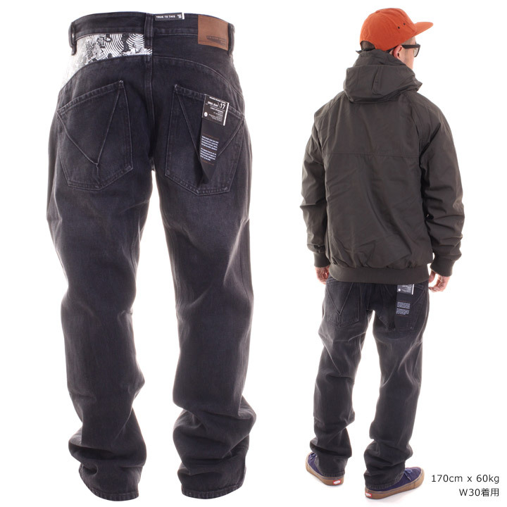 さりげないバックヨークのコラージュプリントが往年のファンにはたまらない日本企画のデニムパンツ。13.5オンスのノンストレッチデニムを採用し、股上深めのリラックスライズに立体裁断3Dシルエットとストリートで好印象の一着◎レングスは日本人の体形に合わせた30インチで裾周りのダブつきがなくスッキリとしたシルエットが特徴です。丈夫で耐久性に優れたボルコムのジーンズは一本持っておいて間違いのないアイテムです。
