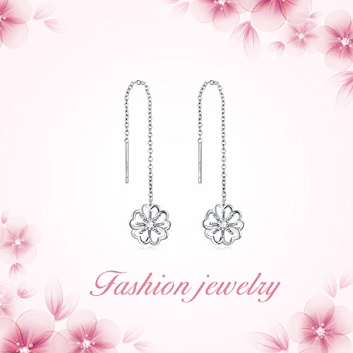 this flower threader earrings made of hypoallergenic 925 sterling silver and AAA+ cubic zirconia, dainty and pretty, best gift for girls, wife, children, women, girlfriend .
