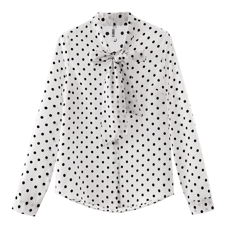 シャツ 長袖 ブラウス ボウタイ シンプル ドット 水玉 キレイめ