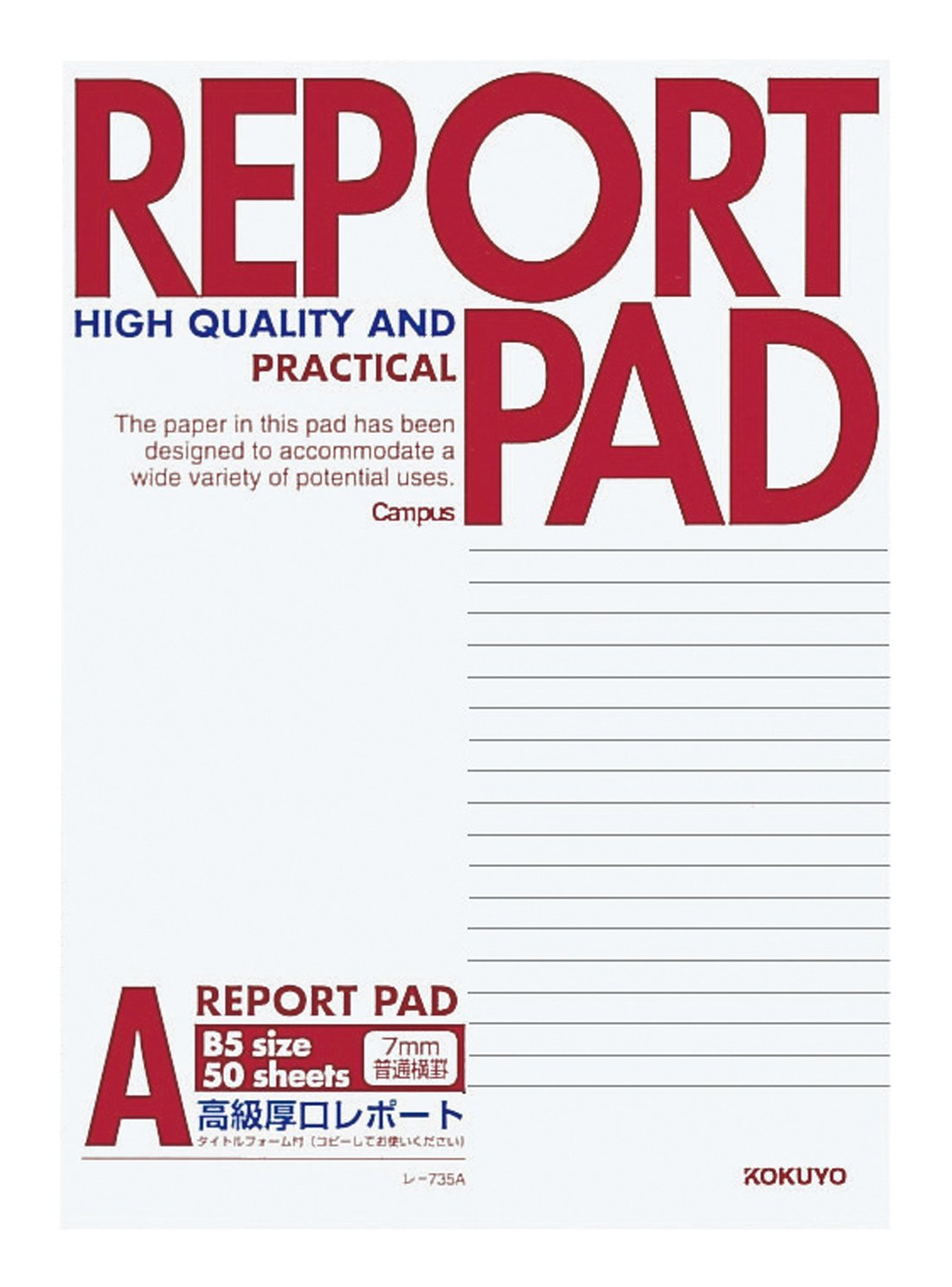 Kokuyo Campus reports pad B5 A ruled 50 sheets Les -735A