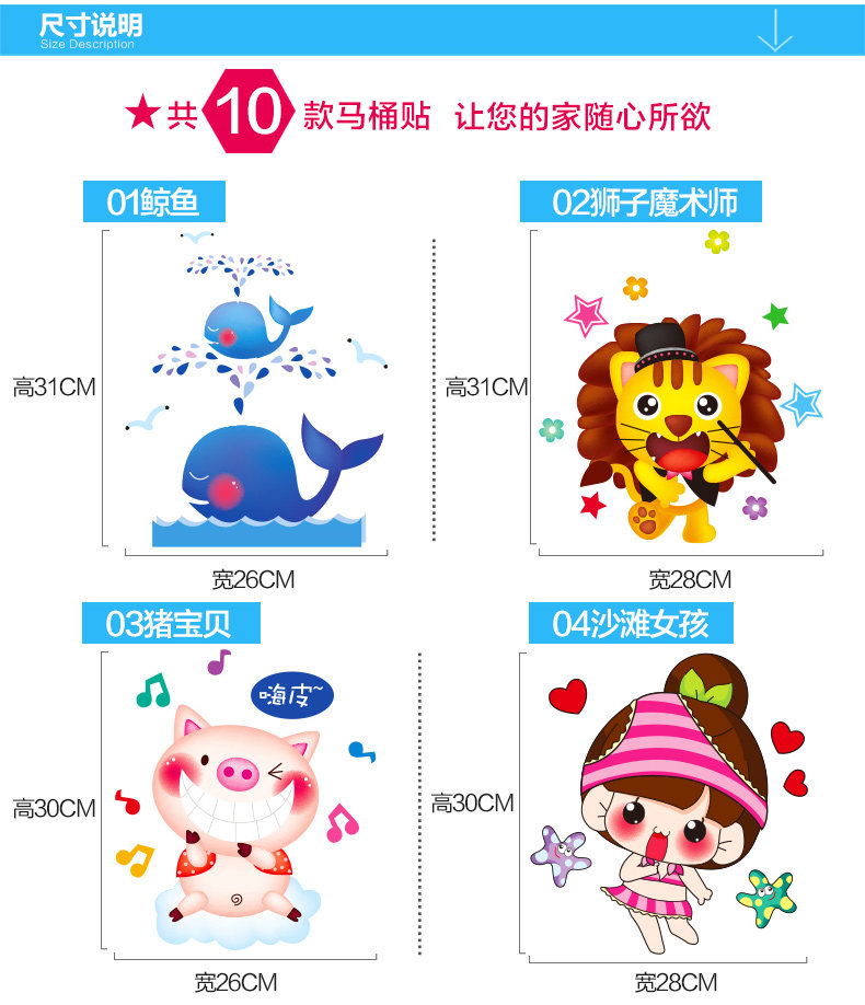 可移除墙贴纸浴室搞笑卡通防水瓷砖贴小孩马桶贴笑脸随意贴纸贴画