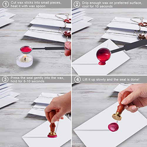 ADHESIVE PUREST SEALING WAX: We adopt supreme sealing wax with embossment on it, easy to curdle, firmly stick and quickly stamp. The sealing wax without wick gives you the purest sealing without any impurity.