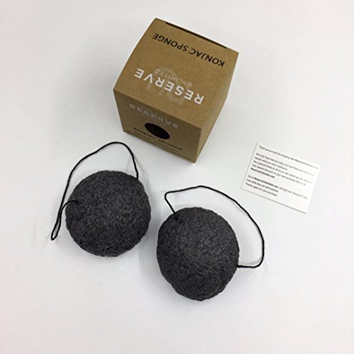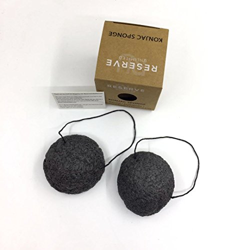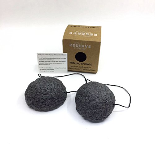Konjac Facial Sponge - by Reserve Unlimited | 2 All Natural Facial Sponges | Exfoliating Sponge | Charcoal Konjac Sponge For Healthier Looking Skin