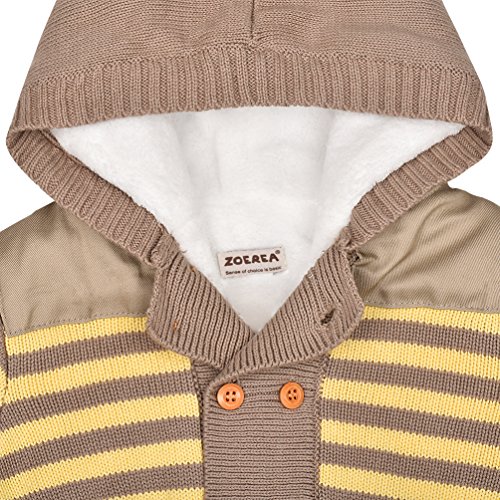 ZOEREA Infant Newborn Baby Romper Sweaters Velvet Knitted Hooded Striped Material: 100% cotton blend + coral fleece.