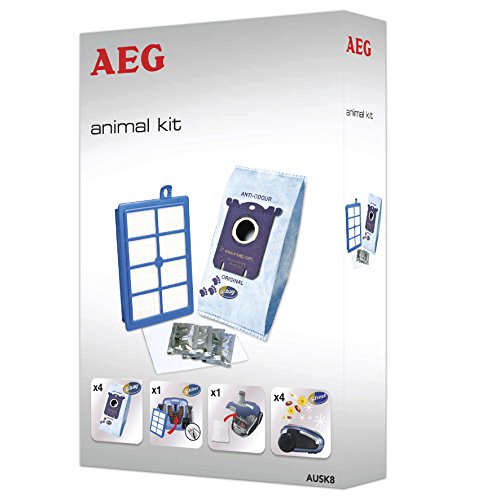 AEG AUSK8 Animal Kit, Inhalt: Vier Staubsaugerbeutel GR203, 1 Hygiene Filter AEF12W, 1 Motorfilter, 1 x Duftgranulat ASBA, Passend fur alle s-Bag Sauger der Marken AEG (AEG VX6-1,