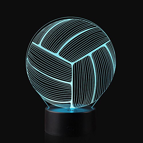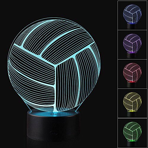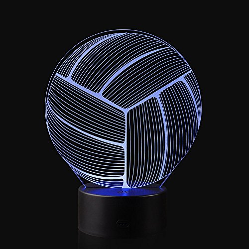 3D Illusion Volleyball Night Light Lamp with 7 Color change, touch base, power by AA batteries