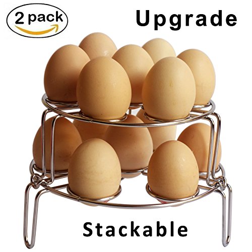 Why You Choose our Egg Rack ? 1.The 2-pack steamer rack can be stacked very well 2.Made of 304 stainless steel,environmental protection materail,food grade 3.Our Satackable steamer rack can cook 14 eggs one time, 7 eggs for each rack,You can also use individually and as trivets 4.Lifetime warranty 0