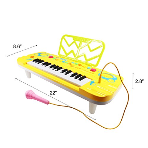 SAFE KEYBOARD PIANO - Made of security and eco-friendly material, fine workmanship and smooth edge design, children will not hurt. The key of soft material without hands injury, will not affect the kids finger bone development, suitable and easy to use for a little toddler musician.