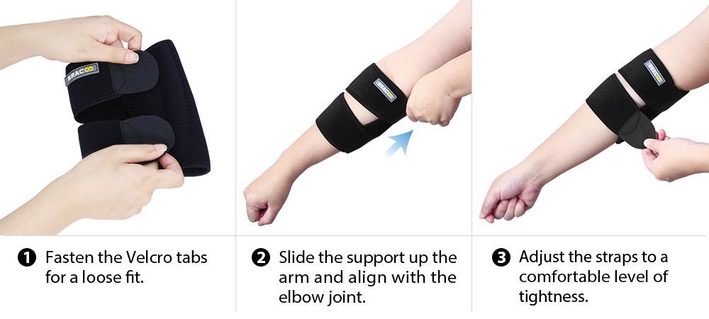 The Bracoo elbow supporter was specially designed to relieve the stress on the elbow joints and tendons during operation.