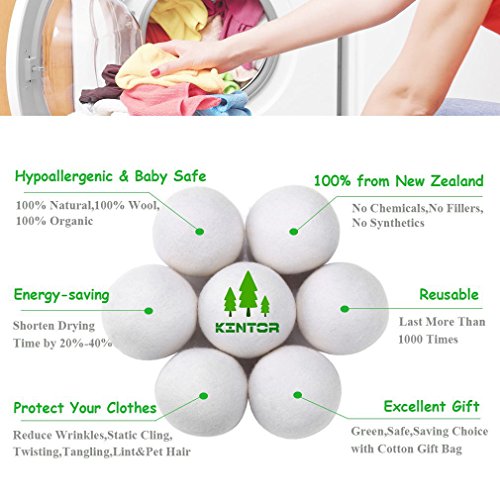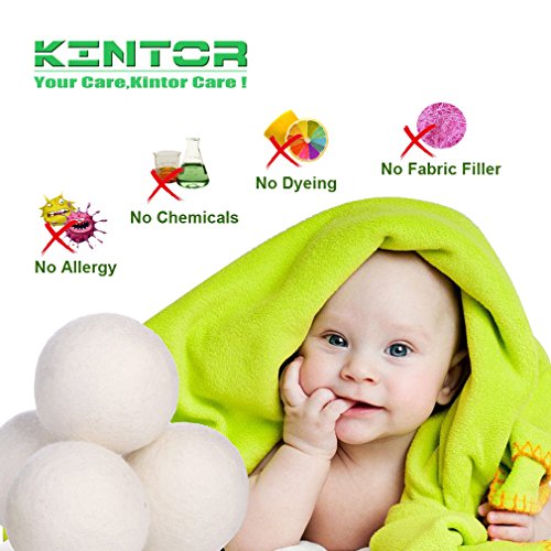 -. Feature : Care your skin and babies!100% natural non-whiten New Zealand Wool,NO FILLERS, NO CHEMICALS, NO SYNTHETICS! Kintor wool dryer balls are Perfect Choice for you and your sweetheart. / Good job to shorten drying time,to soften laundry,to reduce wrinkles,static cling,twisting,tangling,lint&pet hair! / No repeated cost on softener&dryer sheets,lower bouncing noise than plastic balls,Kintor wool balls are efficient and Eco-friendly alternative for your new drying experience! / More fun with essential oil,enjoy your favorite smell as well as the luxury of soft, neat and dry laundry! / A considerate gift with well-designed cotton bag!A green,safe,Efficient&saving solution to all!