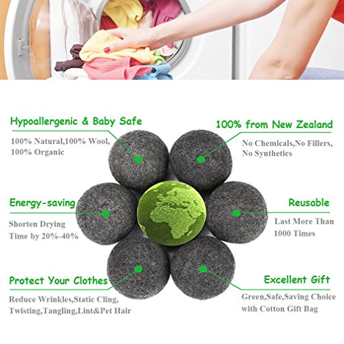-. Title : Wool Dryer Balls XL 6-Pack, Hyllergenic Organic Febric Softerner Alternative,Baby Safe & Unscented,Reduce Wrinkles & static cling, Shorten Drying Time, Reusable Natural 100% Handmade