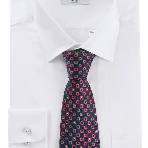 차분한 네이비 바탕에 화사한 핑크사각무늬 올오버에