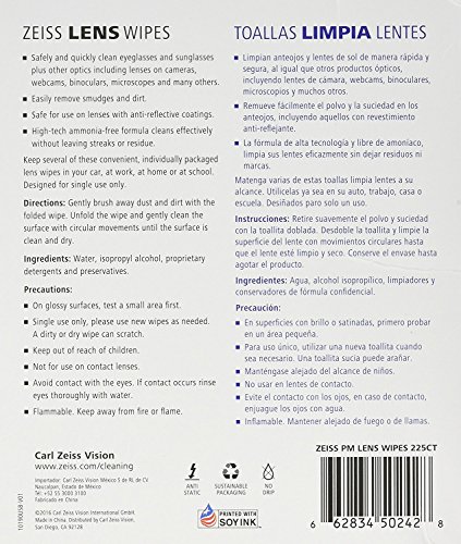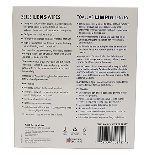 Studio : Carl Zeiss Publisher : Carl Zeiss Binding : Health and Beauty Product Description 225 Zeiss Pre-Moistened Lens Cleaning Wipes, Gentle and Thorough Cleaning of Optical Surfaces