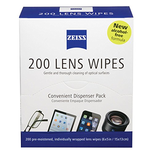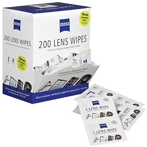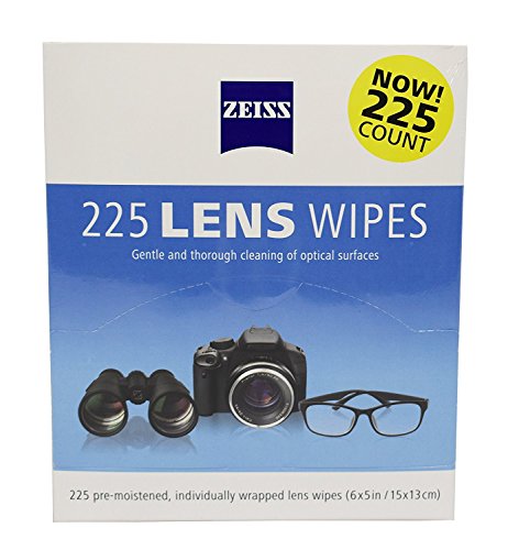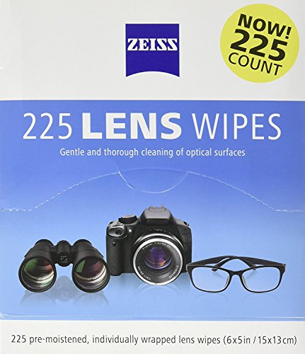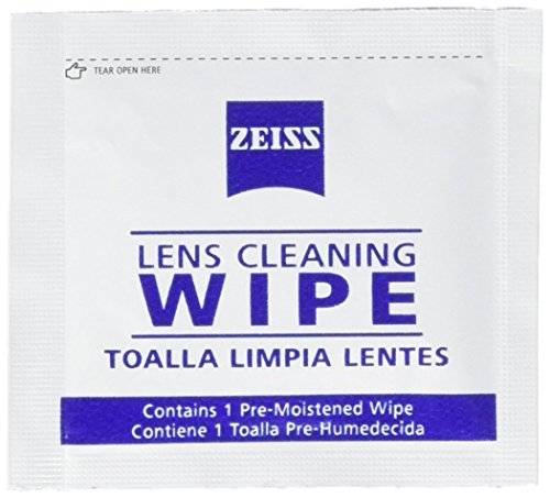 ZEISS pre-moistened lens wipes safely and quickly clean eyeglasses and sunglasses plus other optics like camera lenses, webcams, binoculars and microscopes. Specially formulated with a unique, gentle alcohol solution, these wet wipes gently and effectively remove smudges and dirt, leaving optical surfaces free of scratches, streaks or residue. 0