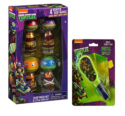 Nickelodeon Teenage Mutant Ninja Turtles Scented Body Washes Bath Gift Set, 4 Pc! Plus Bonus TMNT Shaped Whistle!