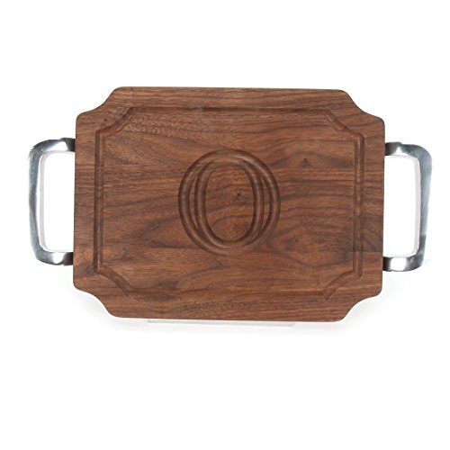 BigWood Boards W300-SPOL-O Bar/Cheese Board with Square Polished Aluminum Handle with Scalloped Corners, 9-Inch by 12-Inch by 0.75-Inch, Monogrammed "O", Walnut