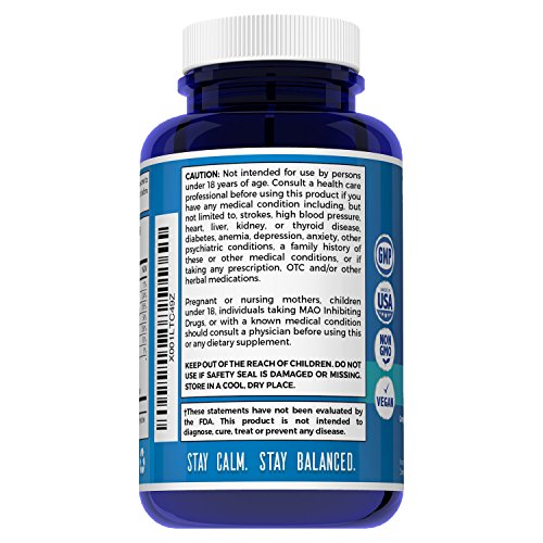 -. Feature : STAY CALM AND COLLECTED | LEAVE STRESS AND ANXIETY BEHIND - this dietary supplement with strong calming properties is specifically created to reduce stress and anxiety that keep you anxious and overwhelmed. Its advanced formula contains effective ingredients, such as Ashwagandha, GABA, L-Theanine, Turmeric Curcumin, and more, which help you reduce the effects of stress and anxiety on your daily life without making you feeling drowsy or medicated. / BE POSITIVE AND PERFORM BETTER | ENHANCE YOUR MOOD AND INCREASE YOUR ENERGY - the vitamin B complex along with L-Theanine and Turmeric Curcumin provide natural mood enhancement along with a boost of natural focused energy to improve your performance. / PERFECT FOR ADULT MEN AND WOMEN OF ALL AGES AND AREAS OF ACTIVITY - no matter how old you are and what your occupation is, Calm P.R.Ime will keep you calmer, energized and in a better mood while facing the challenging situations that a busy life may throw your way. / NATURAL, VEGAN SAFE, NON-GMO, GLUTEN FREE, NO ADDITIVES - our stress support formula is made with natural Non-GMO ingredients, does not contain gluten, artificial colors or flavors, and comes in vegetable capsules, and is absolutely safe to be taken by vegans. / QUALITY AND SATISFACTION GUARANTEED - we take great P.R.Ide and care in manufacturing and developing only the highest quality products for our customers. Our dietary supplements are tested for purity and are proudly made in the United States, at an FDA-registered facility under strict Good Manufacturing Practice standards and other necessary requirements.