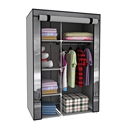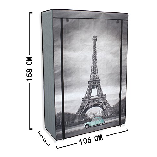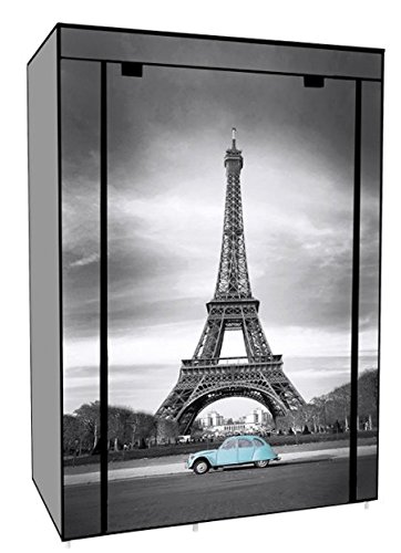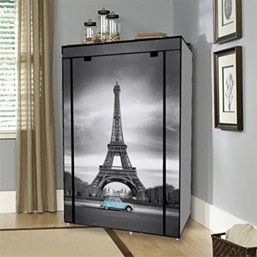 EBS Portable Non Woven Closet Canvas Wardrobe 5 Shelves Rack Storage Hanger, Eiffel Tower