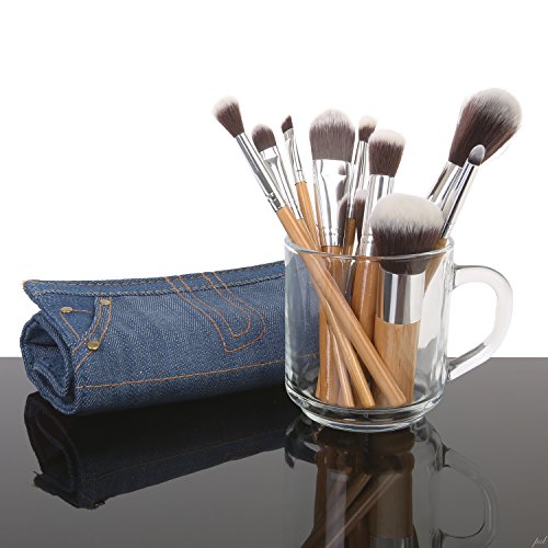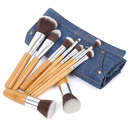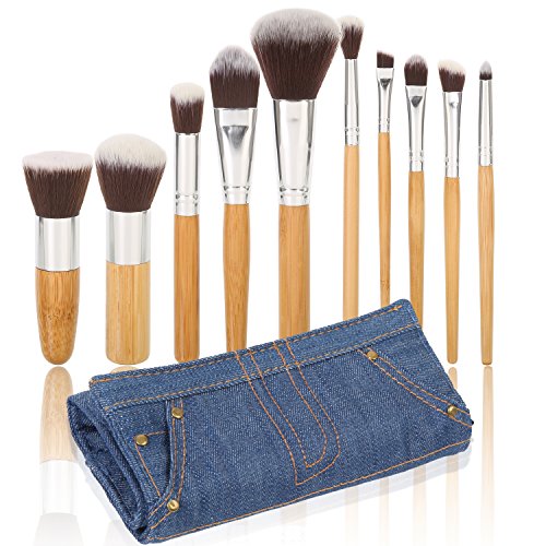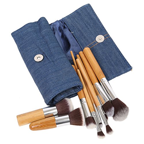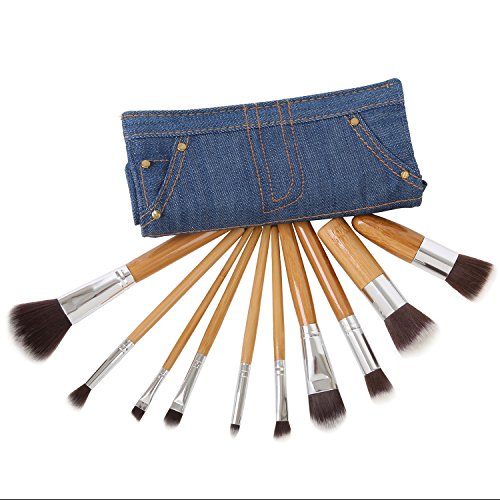 -. Title : Ivation Pro Signature Brush Set - Includes 10 Pieces Handmade Natural/synthetic Bristle with Bamboo Wooden Handle, Comes with a Travel Holder Jeans Pouch - Best Quality Brushes for Eye Makeup, Face and Blending Foundation,