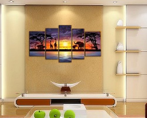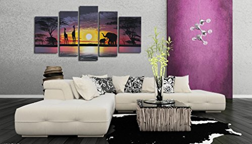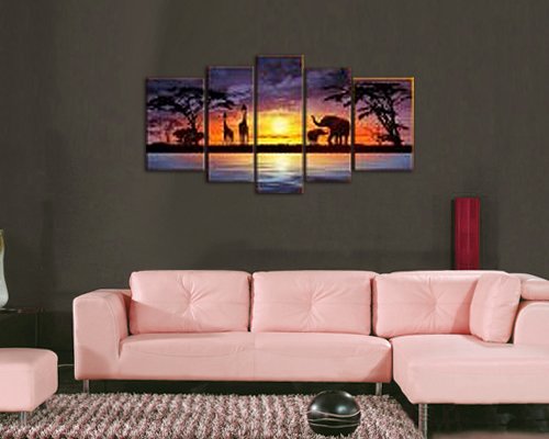 -. Title : Cherish Art 100% Hand Painted Oil Paintings For Christmas Gifts Hot Sale For Promotions African Elephant Giraffe 5 Panels Wood Inside Framed Special Offer Selling Hanging Wall Decoration