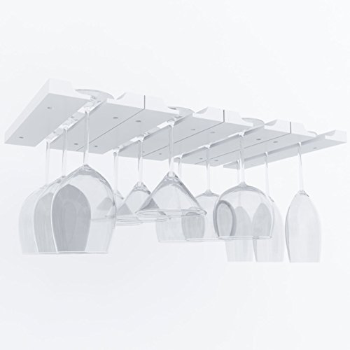 Under Cabinet Wooden Hanging Wine Glass Holder by ArtifactDesign Adjustable 4-Sectional Stemware Storage Rack White