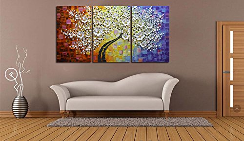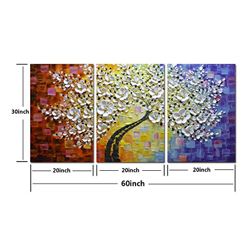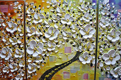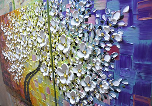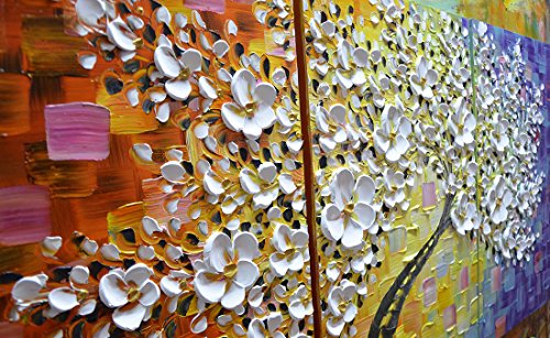 High quailty: Palette knife paintings ,100% hand painted. Part of the blossom petals up to 5 mm. Made of Imported Fine Acrylic, which can keep colorful permanently without fading and cracking.