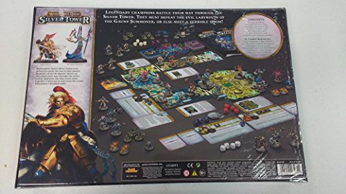 hroughout the mortal realms the legends of the Silver Tower are recounted with awe and admiration. Tales of disparate champions good and evil, brought together by naught more than fate, battling against sanity-shredding horrors in the ever-shifting domain of the Gaunt Summoner of Tzeentch. Tales of bravery, heroism, treachery and betrayal. Tales of teamwork, success, and glory-hunting failure. Some who tackle the Silver Tower seek a boon from the Gaunt Summoner, others wish to learn his true name, that they might destroy him. All must face foul, writhing monsters, bizarre, labyrinthine corridors bristling with traps and strange, maddening riddles before they even gain the chance to stand before his fell sorcery. The greatest champions, those who grow in strength over time as they solve the Silver Tower's secrets, even they may fall at this hurdle - yet the riches, power and freedom they could gain drive them ever forward. But for every tale that ends in glory, another falls short, bringing only madness and despair... Warhammer Quest: Silver Tower is a stunning boxed game for two to four players, set in the shifting, labyrinthine lair of a sinister Gaunt Summoner! Work with your friends to conquer the secrets of the Silver Tower, or take the glory for yourself - characters level up and become stronger with persistent stats kept between games. The thirteen double-sided board tiles mean no two adventures need be the same; a roll of the dice can send your adventurers off on wild tangents, with literally thousands of different dungeon-crawl combinations.Feature