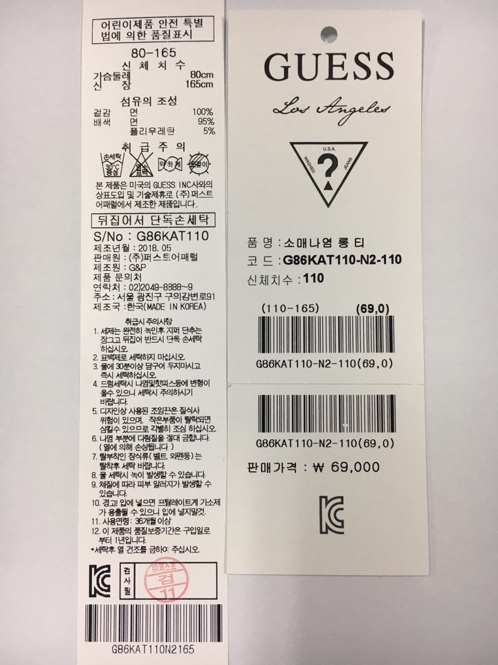 제조자 : 퍼스트어패럴
