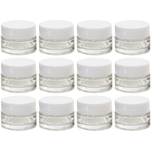 Clear Glass 0.25 oz Thick Wall Balm Jars with White Foam Lined Smooth Lids (12 pack)