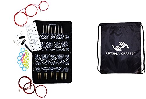 Bundle includes 1 ChiaoGoo Twist Red Lace Interchangeable Knitting Needle Set Complete: Sizes US 2 (2.75mm)-US 15 (10mm) with 1 Artsiga Crafts Project Bag 7500-C