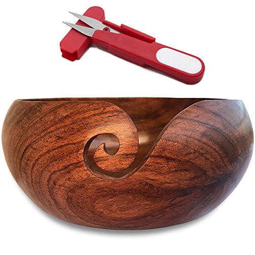 Wooden Yarn Bowl Holder Rosewood and Yarn Cutter Bundle 6”X3” with Gift Pouch, Knitting Bowl Handmade from Sheesham Wood, Yarn Holder Storage for Knitting and Crocheting – Perfect Gift!