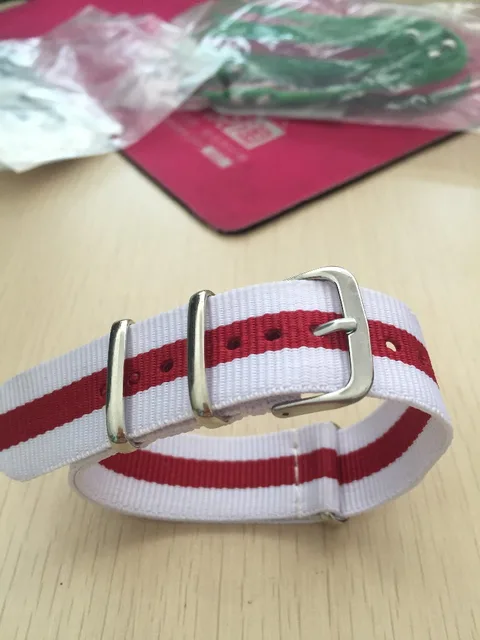 | [해외] 20 미리메터 스트랩 화이트/레드 나토 짠 섬유 손목 20 미리메터 나일론 시계 팔찌 스트랩 손목 밴드 버클 저렴한 직물 |