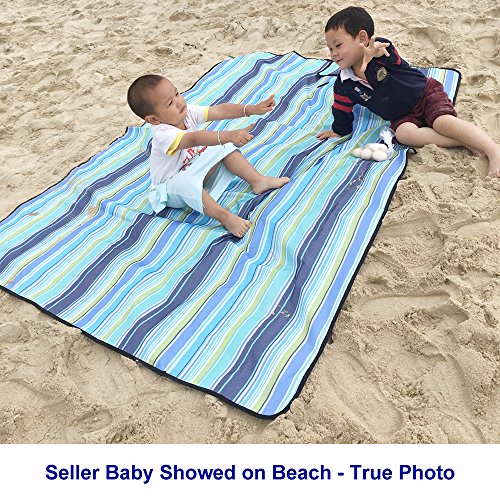 Extra large beach blanket: size 78"x59", it’s big enough for family use or other gatherings, kids & adults can play or relax on it, good for kids to play games / toys at home also