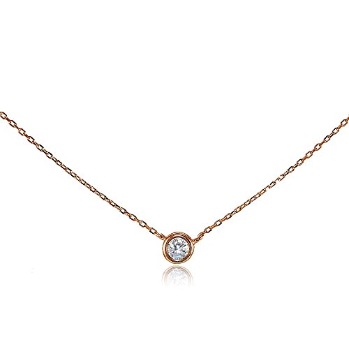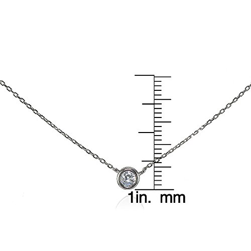 This attractive choker necklace showcases a 4mm bezel-set solitaire cubic zirconia stone. The necklace is 13" long plus attached 1.5" extender. It is crafted of sterling silverFeature