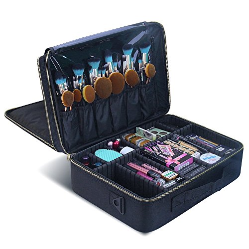 Large Makeup Case,Professional Cosmetic Makeup Bag,3 Layer Cosmetic Organizer,Travel Makeup Bag with Shoulder Strap with Cosmetics...