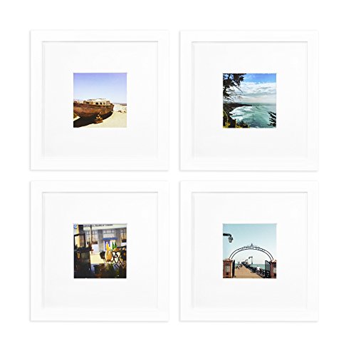 -. Title : Golden State Art, Smartphone Instagram Frames Collection, Set of 4, 8x8-inch Square Photo Wood Frames with White Photo Mat & Real Glass for 4x4 photo, White
