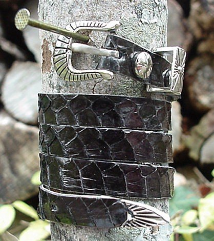 Western Hatband Hat Band Black Genuine Snake Skin with 3 Pc Buckle Set
