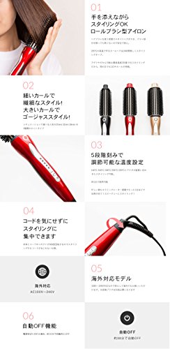 Ronne 아게 윤기 핫 롤 브러시 헤어아이론(고데기) 해외 대응 MAX220도 (32mm,레드)