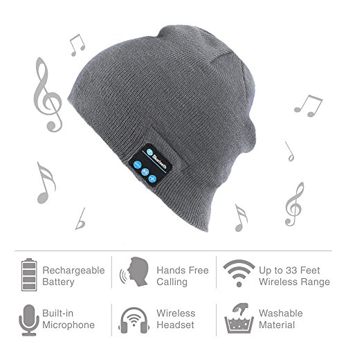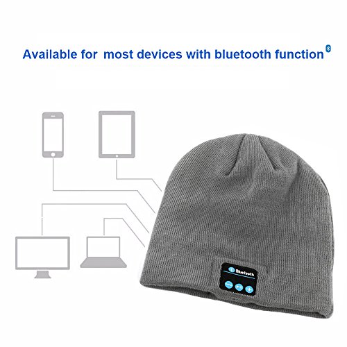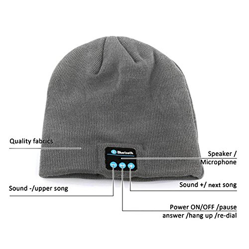 Momoday Bluetooth Music Soft Warm Beanie Hat Cap with Stereo Headphone Headset Speaker Wireless Mic Hands-free for Men Women Speaker Winter Outdoor Sport Best Gift (Light Grey)