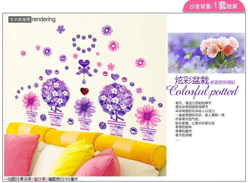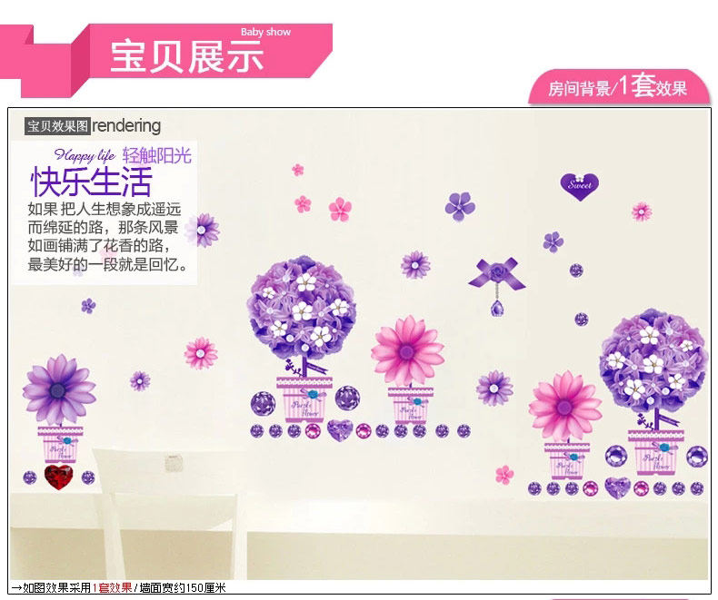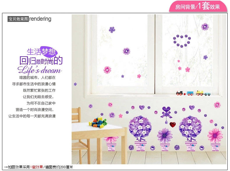 This is the two sets of prices Brand: small Aiai Wall Stickers Type: waterproof wall stickers Material: environmental protection PVC, the back with rubber, Style: Modern Chinese Pattern: Plant flowers Pricing Unit: set Wall Sticker Style: Plane Wall Stickers size: detailed dimensions refer to the effect of Image (unit: cm) Sizes, "you receive the goods and typesetting" size and "collage after size reference" Our tile size for reference only, you can combine according to room size freedom