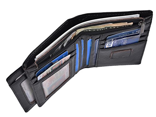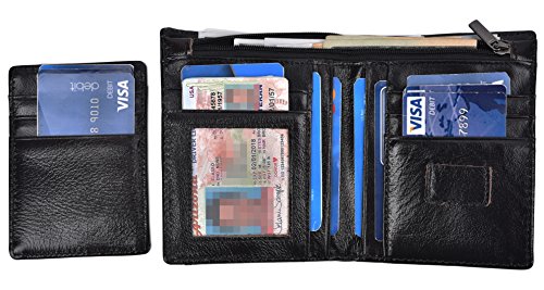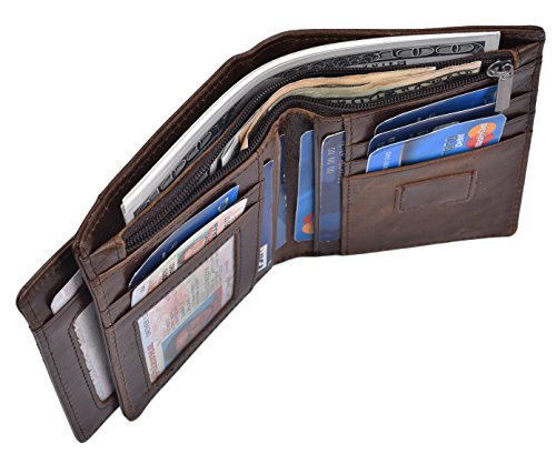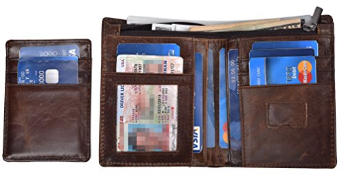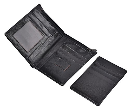-. Feature : Genuine Leather: Made of genuine leather, soft hand feeling and it is skilled line finish, wear-resistant and durable / Size: Its size12*9.5*1.5cm. Easy for carrying, putting into your front or back pockets or just putting into you bags. / Large Capacity: 6 card slots, one ID display window, 2 compartments for cash and 2 SIM card slots. Enough capacity for daily use. / Ultra Slim: The wallet is designed to be ultra slim, only 1.5cm thick. It is easy to slide into your pockets and easy for carrying.