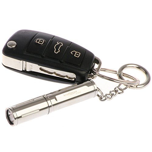 Kraftmax X100E Hochleistungs LED Schlüsselanhänger Taschenlampe atemberaubende Leuchtkraft von 80 L Premium Version in Edelstahl, silber / chrom 42266892