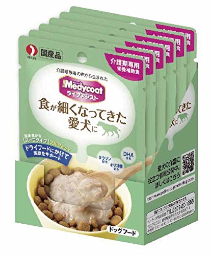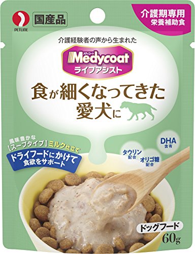 素材構成:たんぱく質4%以上、脂質3%以上、粗繊維0.5%以下、粗灰分2%以下、水分90%以下、58約kcal/袋