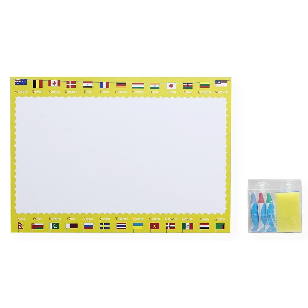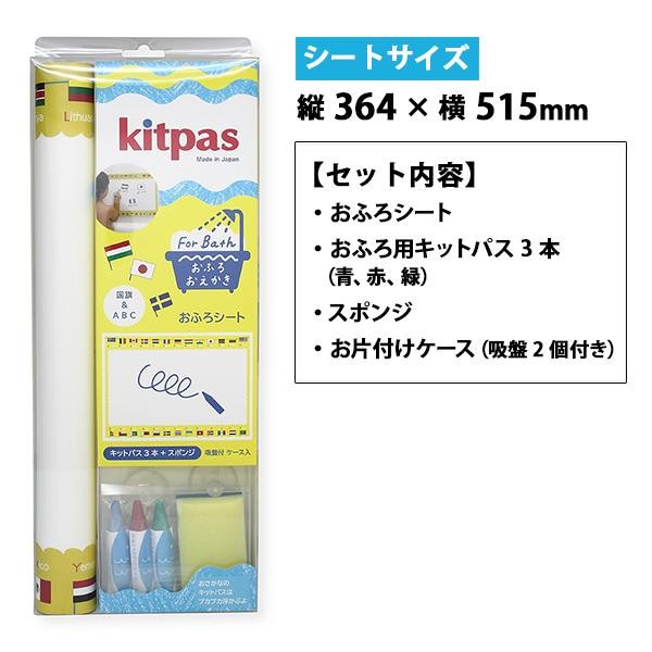 浴室の壁に貼って自由にお絵かき、お勉強ができる「おふろシート」と濡れた面にも使える「おふろ用キットパス」のセットです。スポンジで簡単に落ち、繰り返し書くことができます。 |