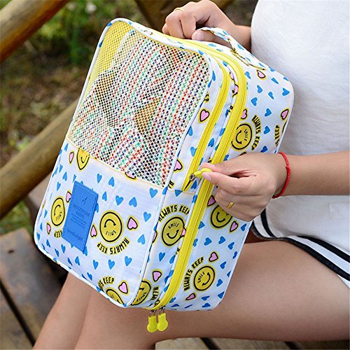 1. Easy to Pack or Find: See-Through - Breathable yarn and double buckle are more convenient and also allows you to have at-a-glance viewing for easily identifying what's inside. 2. Anti-wrinkling Effectively: It helps you organize and pack clothing or accessories easily. It can prevent your clothing from getting wrinkle and crush during the travel. 3. Multicolored Option: Various Colors are available for you to select according to personal preference. Vivid Color allows you to enjoy a more colorful travel. 4. Multi-purpose Shoe Organizer Bags: Good design for home, gym, travel use. Great for traveling, carrying shoes to from the gym, or for keeping your shoes dust free in the closet. Can also be used as makeup bag, toiletries bags and for other uses. Waring Notice: