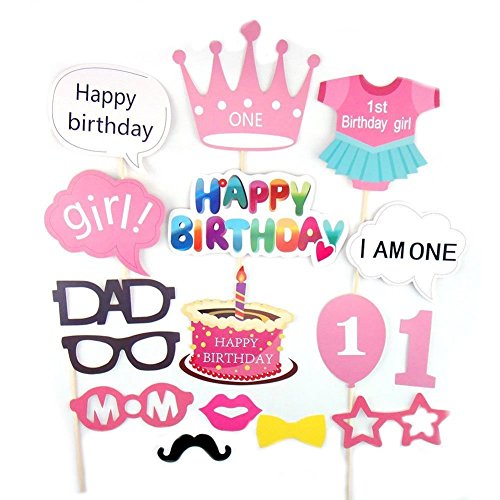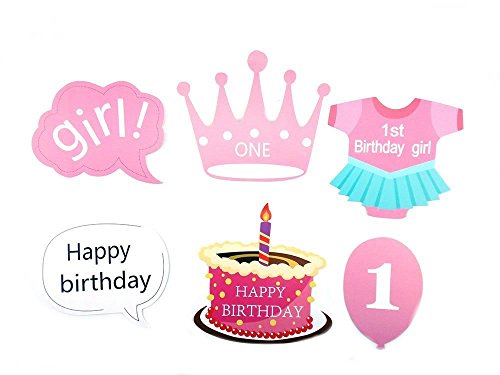 Losuya Baby Girl 1st Birthday Party Photo Booth Props Baby Shower Photobooth Props Pink Kit 25pcs Mustache Cake Happy Birthday Party Decor Favor