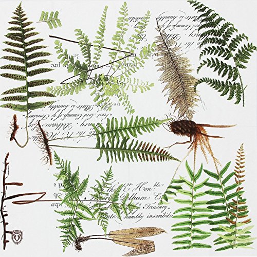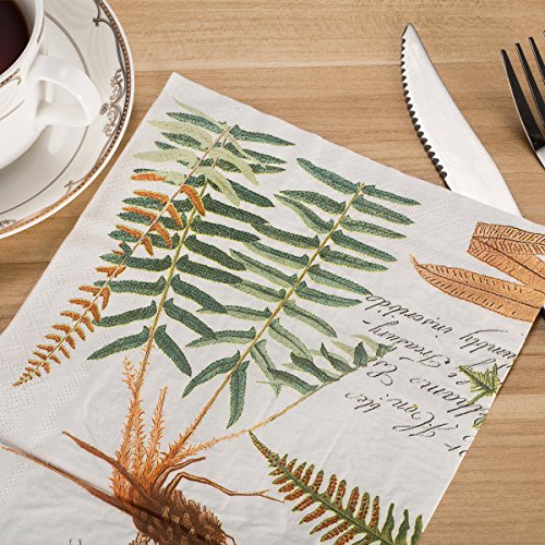 Dinner Decorative Cocktail Paper Napkins Multicolored Floral Printed Elegant Vintage Party Napkins 20-count ,3-Ply (Fern leaves)