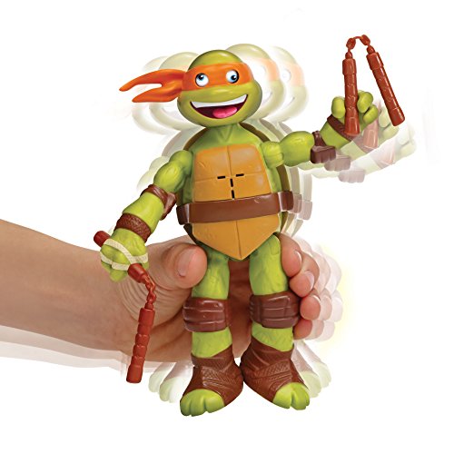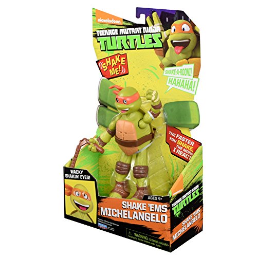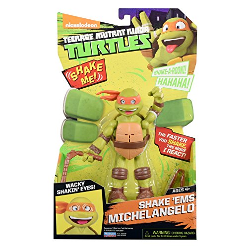 -. Binding : Toy -. Brand : Teenage Mutant Ninja Turtles -. EAN : 0043377916550 -. Feature : The faster you shake the figure, the louder and faster the character will laugh and shout / Includes awesome turtle phrases and hilarious sounds / Includes their signature weapons / 2013 Viacom International Inc. All Rights Reserved. TEENAGE MUTANT NINJA TURTLES and all related titles, logos and characters are trademarks of Viacom International Inc -. IsAdultProduct : 0 -. Label : Playmates - Toys -. Manufacturer : Playmates - Toys -. Model : 91655 -. MPN : 91655 -. PackageQuantity : 1 -. PartNumber : 91655 -. ProductGroup : Toy -. ProductTypeName : TOYS_AND_GAMES -. Publisher : Playmates - Toys -. Studio : Playmates - Toys -. Title : Teenage Mutant Ninja Turtles Shake Ems Michelangelo Action Figure -. UPC : 043377916550 -. Warranty : No Warranty