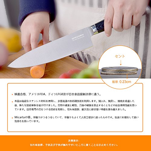 SPEVORIX 우칼 세프(chef) 부엌칼 나이프 203mm 스테인레스 Micarta 업무용 가정용 겸용 칼이 드는 정도 발군