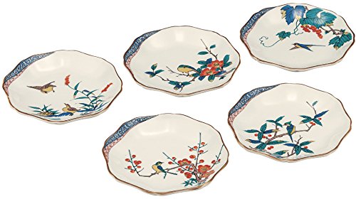 이노정봉 쿠타니야키 5 호접시 전 (5 매세트) 화조 그림 변함 K4-89